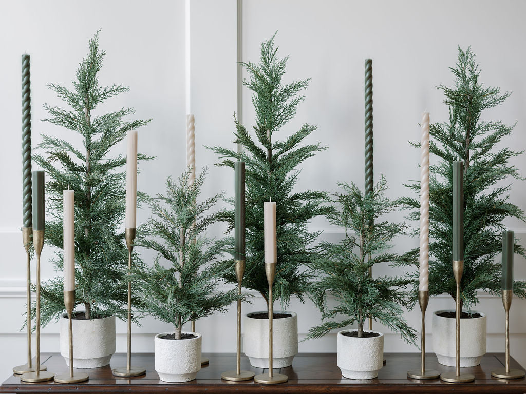 Elevate your home decor with our set of 3, handcrafted antique brass candlesticks (15", 12", and 8.5"). These candlesticks are the perfect addition to your tablescapes, mantle, island, foyer entry table, and more. Versatile, mix and match multiple sets to create ambiance for special occasions or use just a few to set the mood for intimate gatherings.